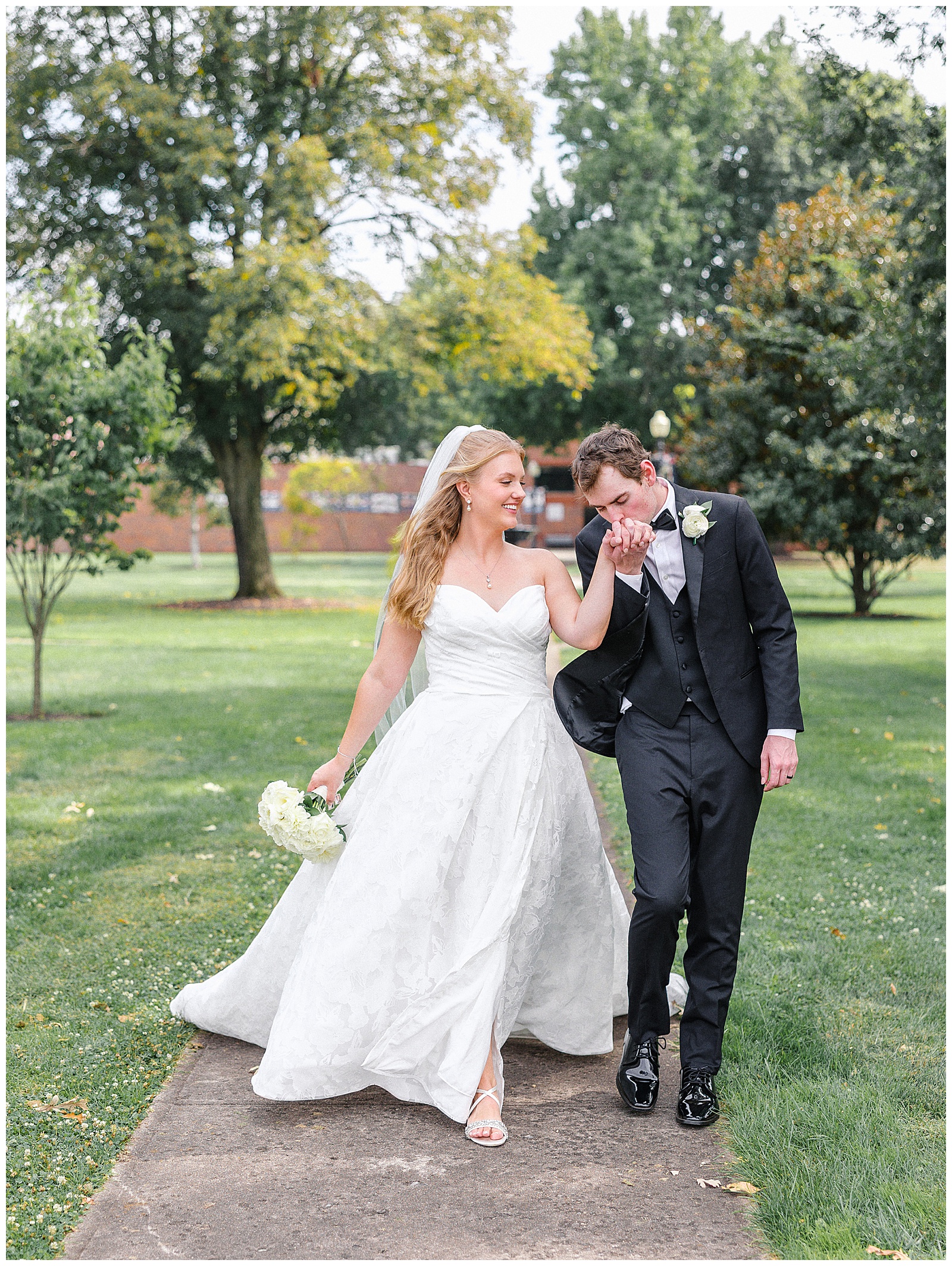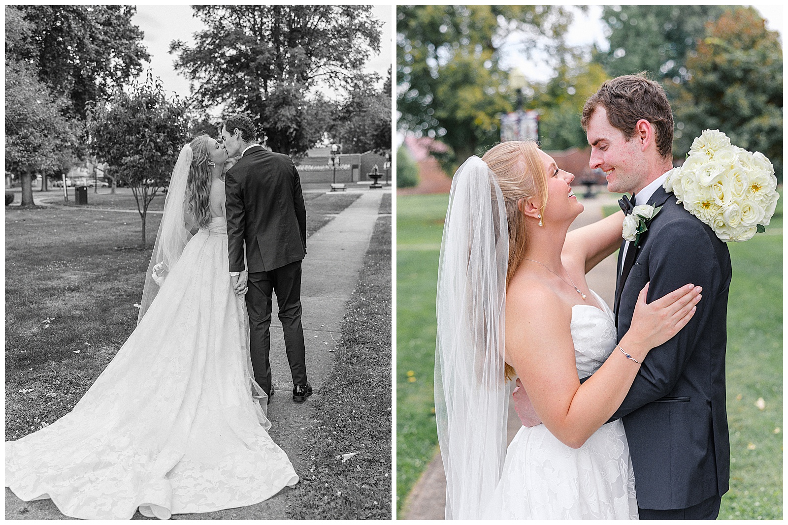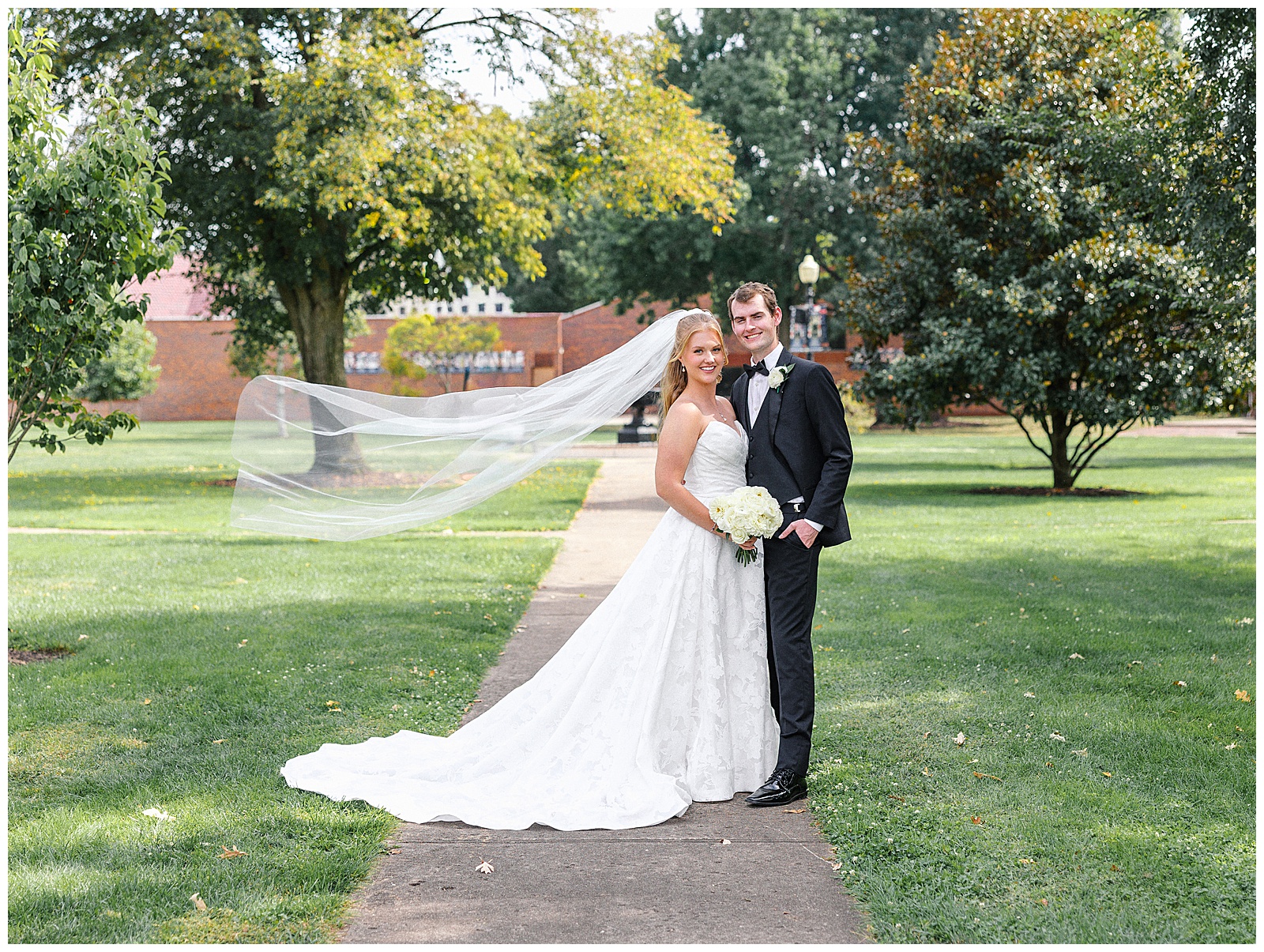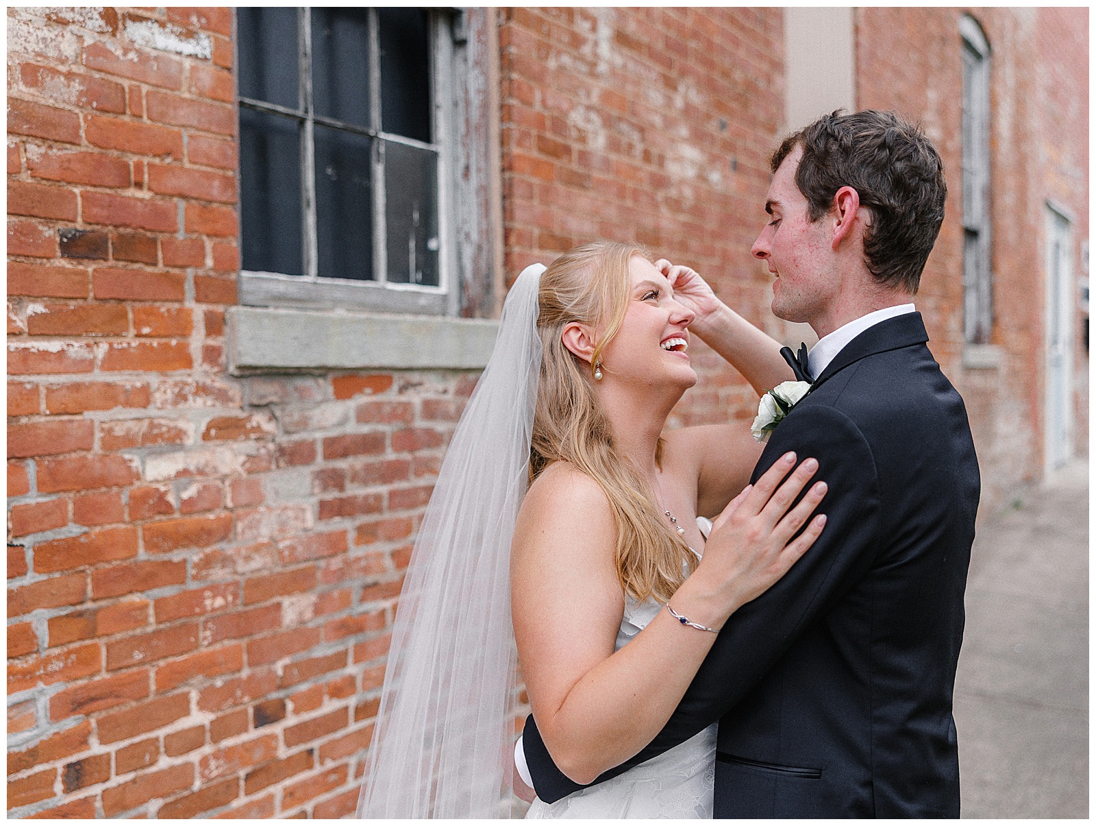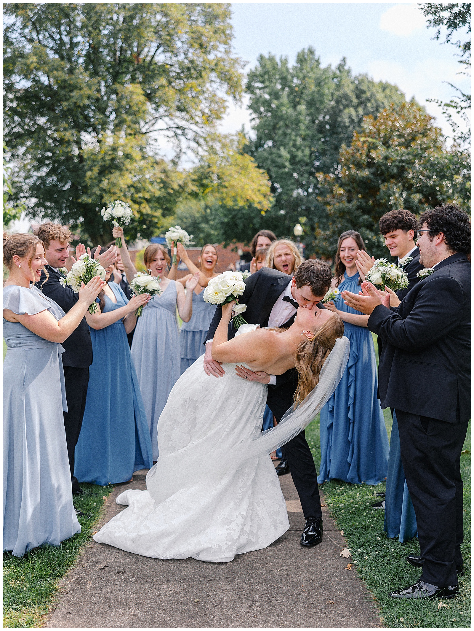 Jane and Graham were married at Our Lady of Good Hope Catholic Church in downtown Miamisburg. After the ceremony, we explored downtown Miamisburg for portraits. The colorful murals, brick alleyways, and twinkle lights provided such a fun backdrop for romantic photos. We also used a beautiful park next to the church for portraits. I always love it when there is a mixture of urban and nature settings so that we can get a great variety!