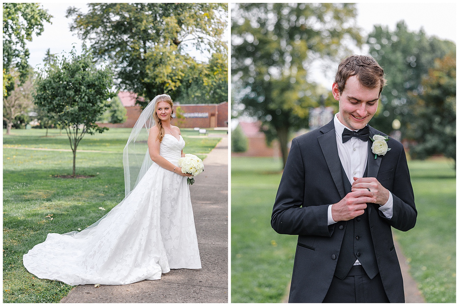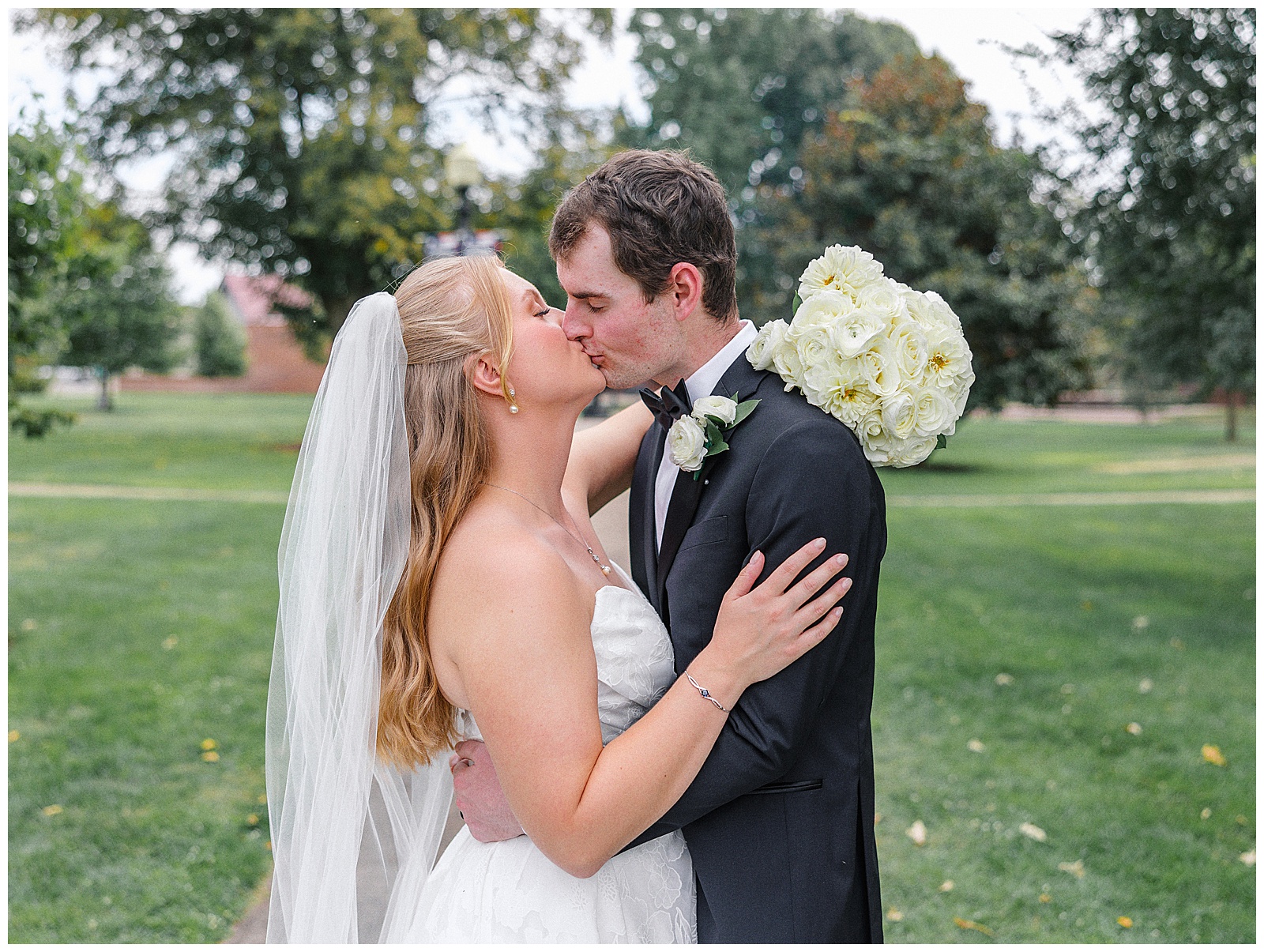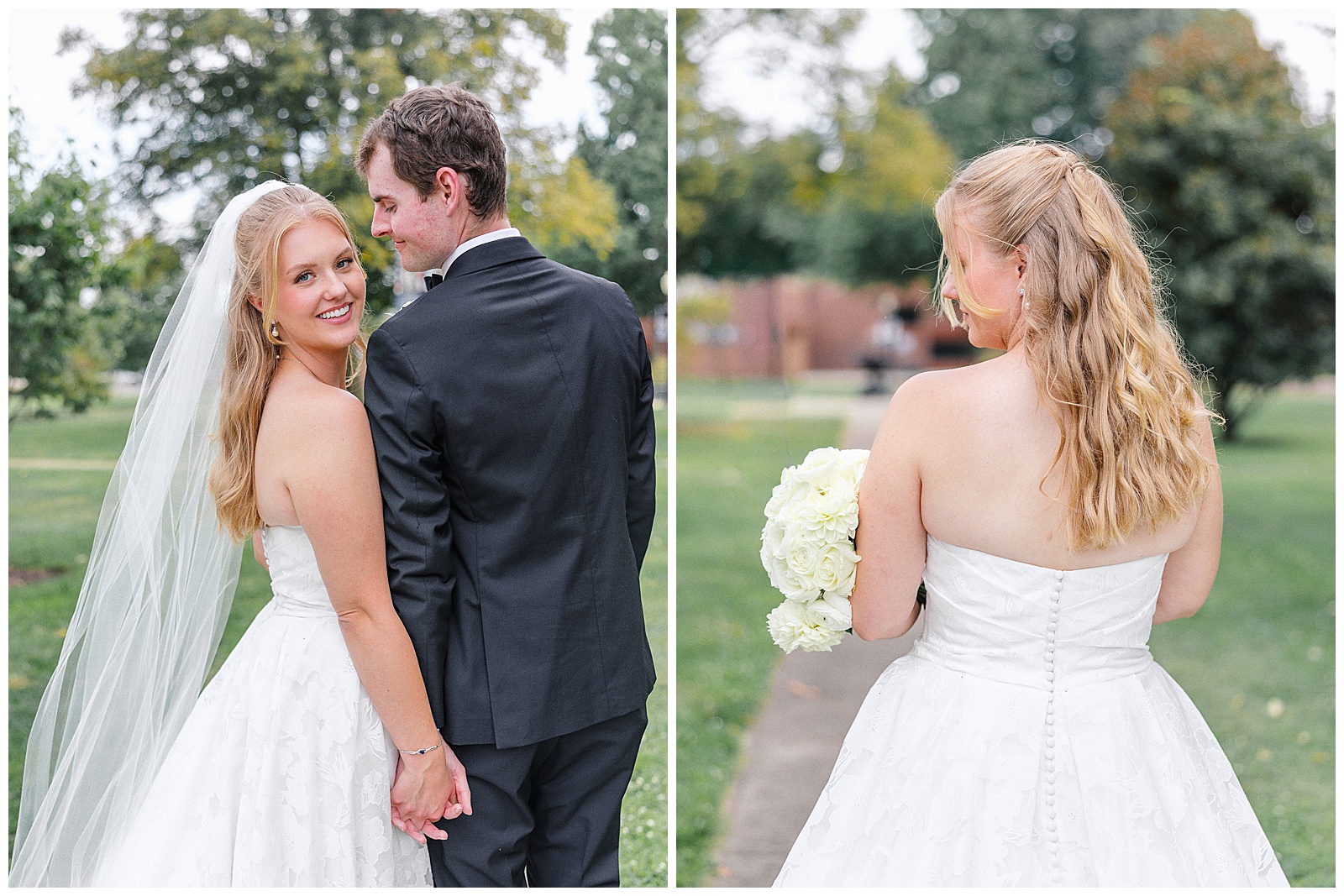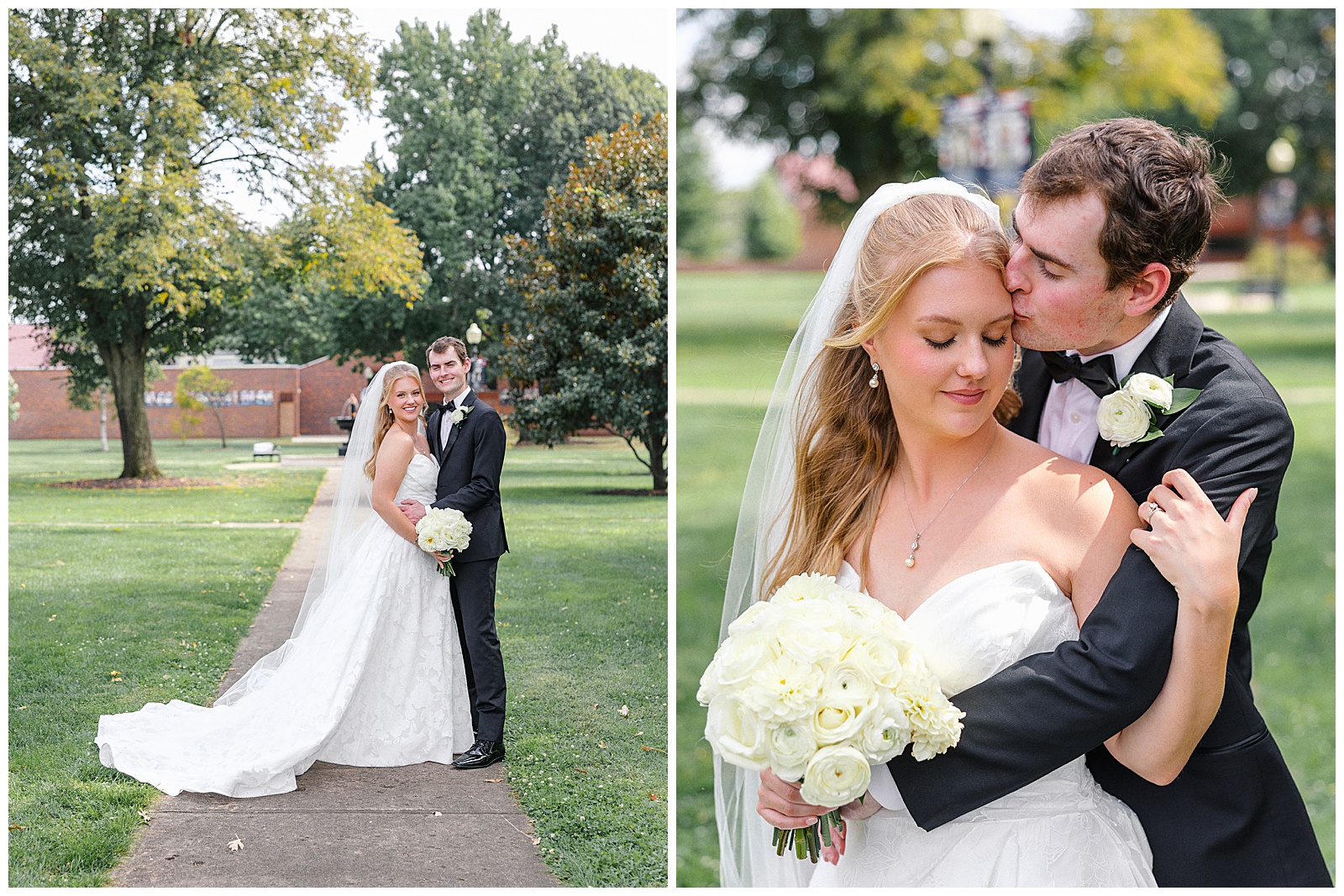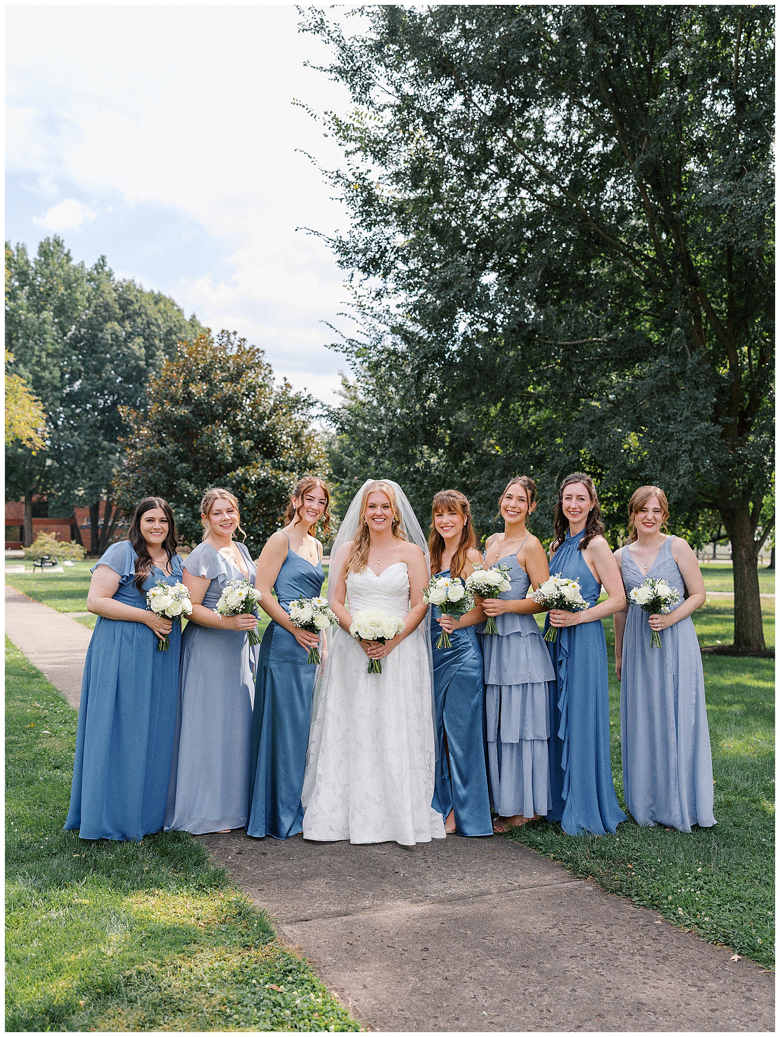 Jane and Graham were married at Our Lady of Good Hope Catholic Church in downtown Miamisburg. After the ceremony, we explored downtown Miamisburg for portraits. The colorful murals, brick alleyways, and twinkle lights provided such a fun backdrop for romantic photos. We also used a beautiful park next to the church for portraits. I always love it when there is a mixture of urban and nature settings so that we can get a great variety!