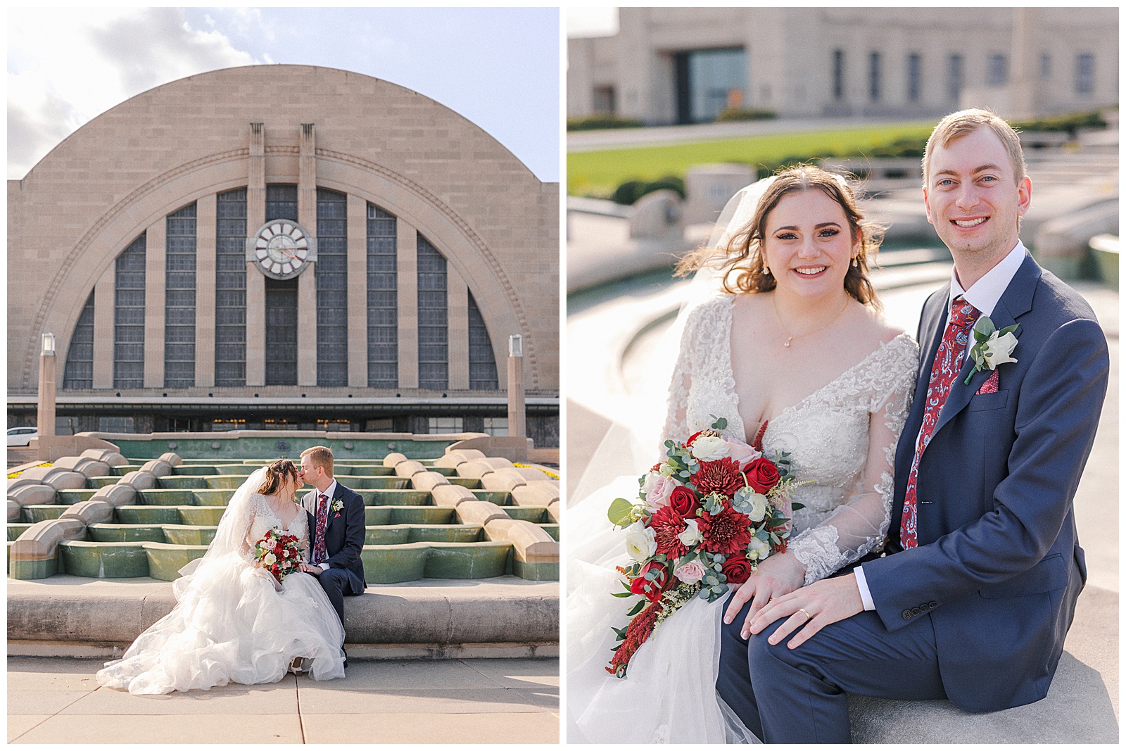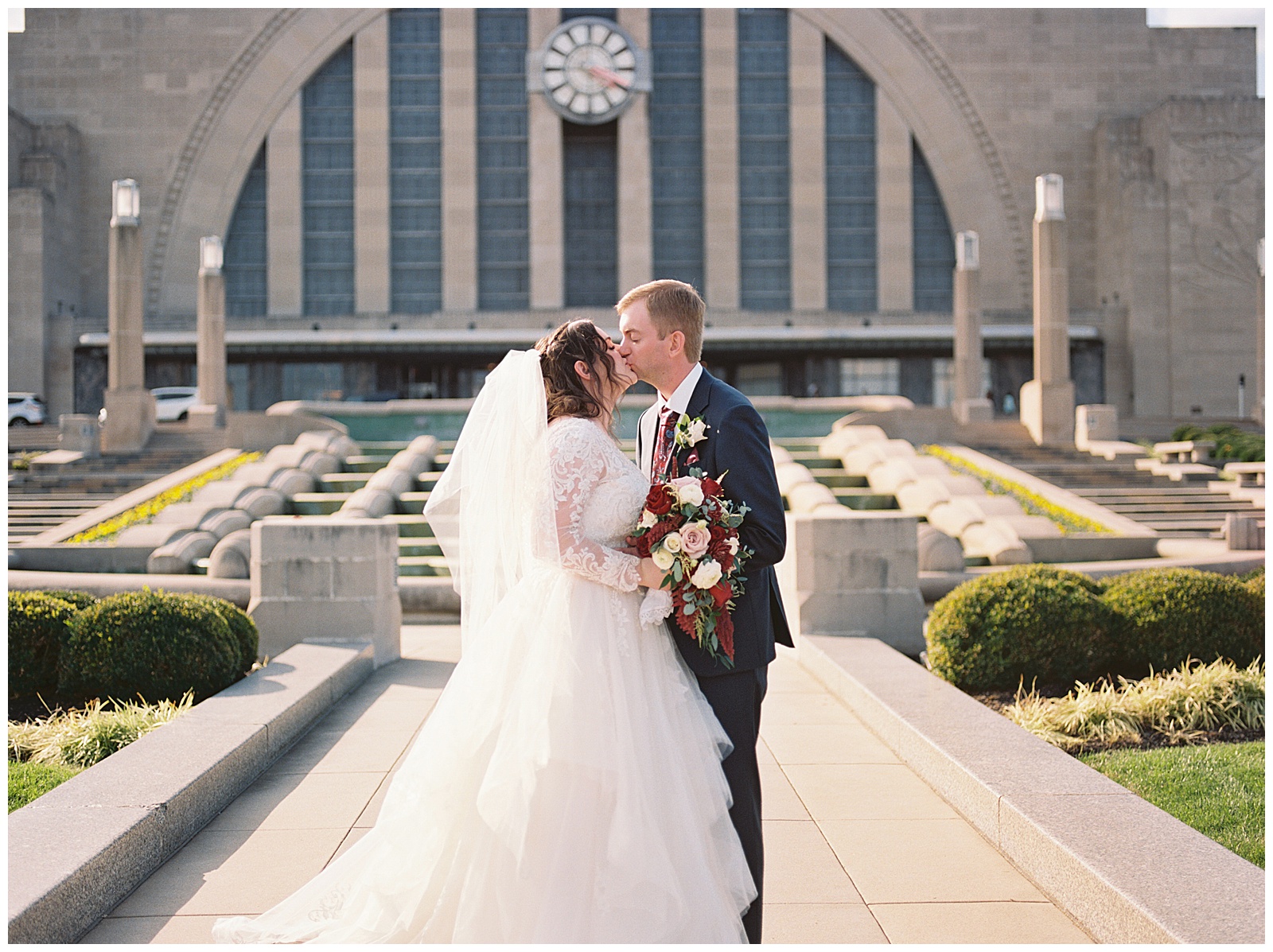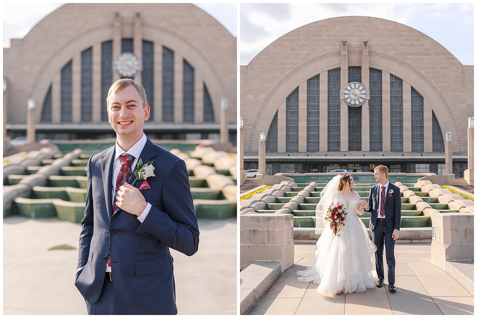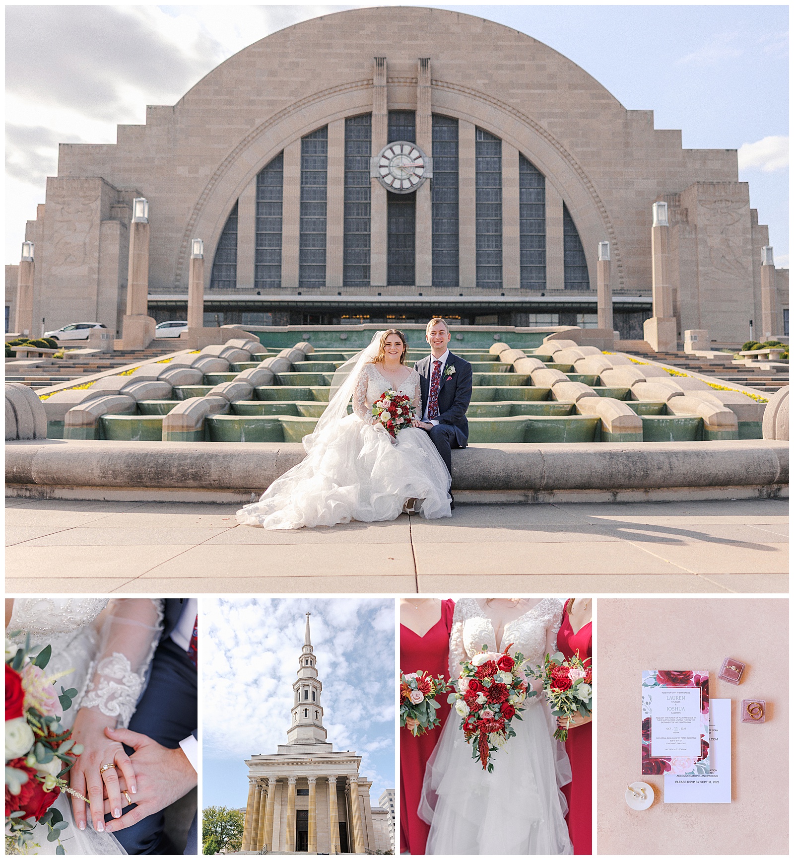 Next, we made our way to Cincinnati Museum Center at Union Terminal, one of the city’s most stunning landmarks, for more portraits! We ended the evening downtown at Fountain Square, just steps away from their reception venue, Backstage Event Center, where the celebration continued with dinner, dancing, and joyful moments shared with family and friends.