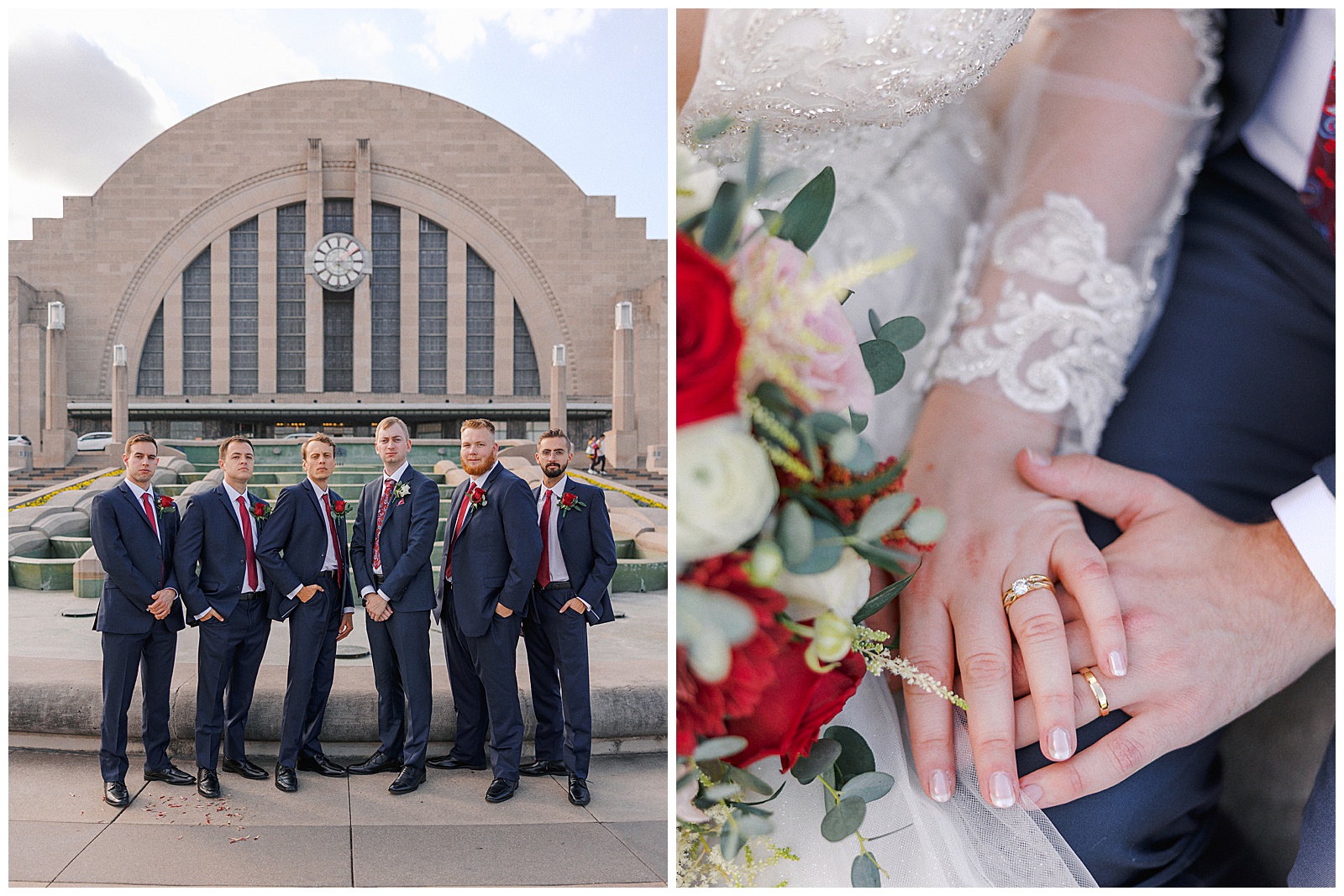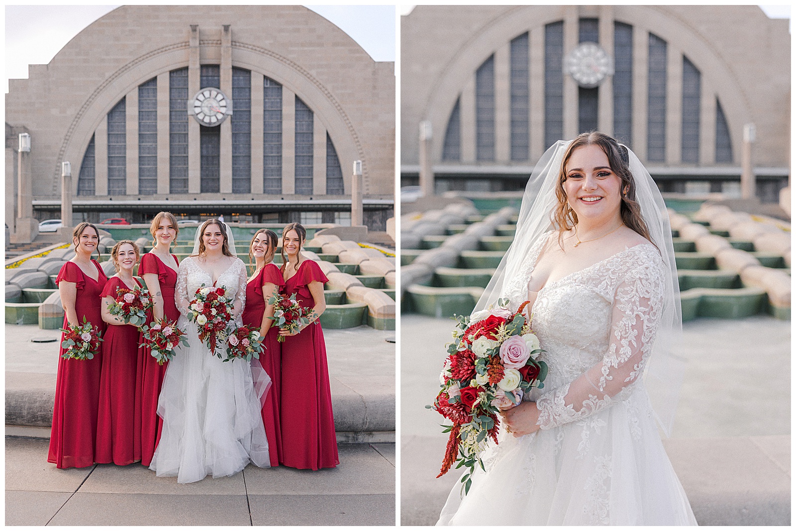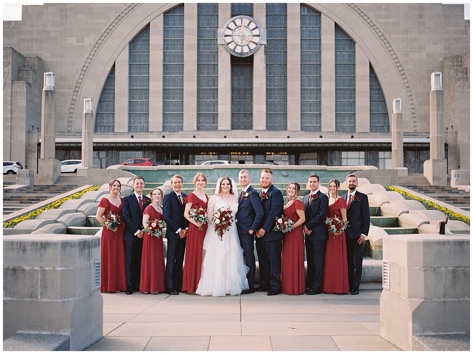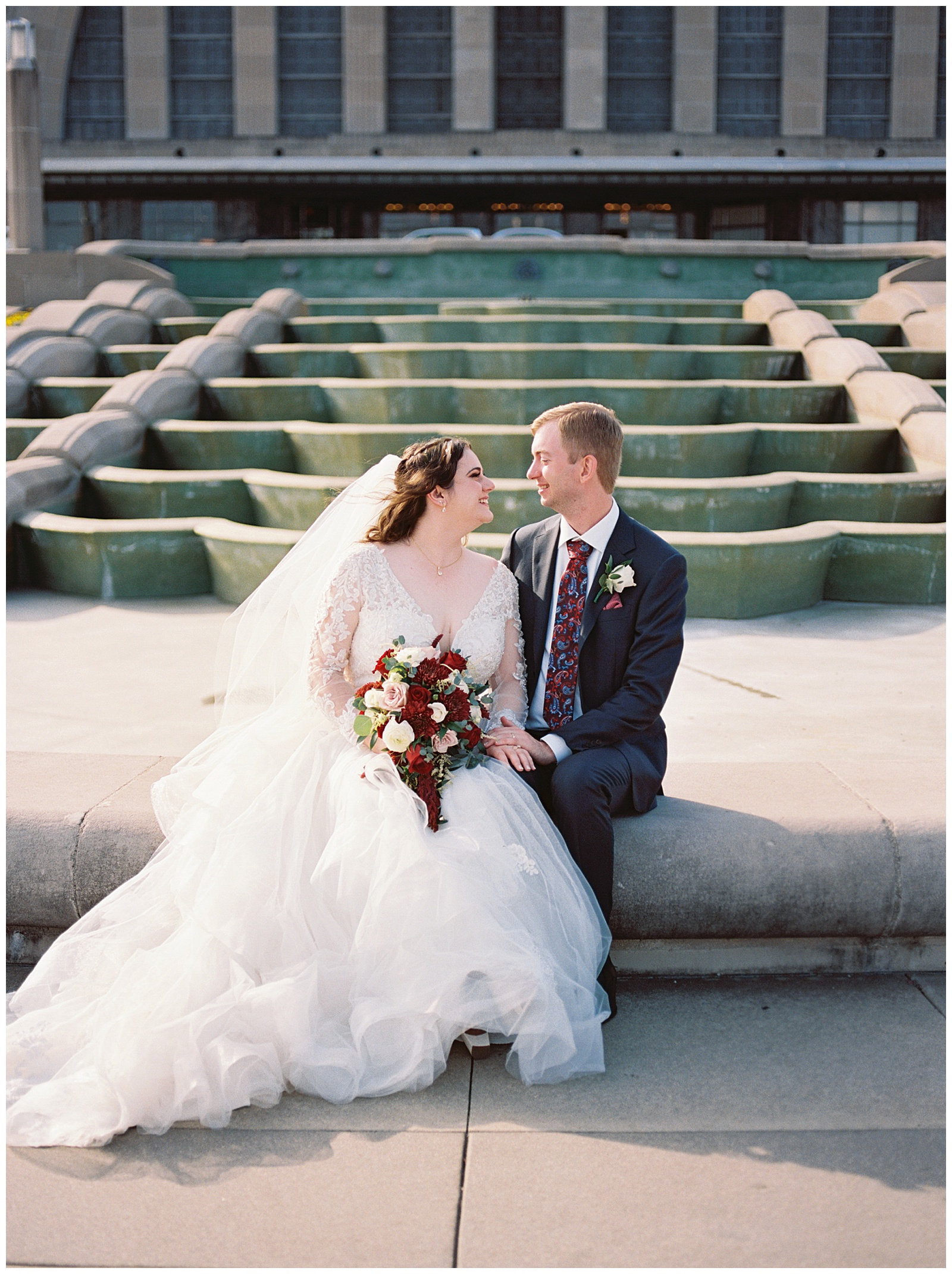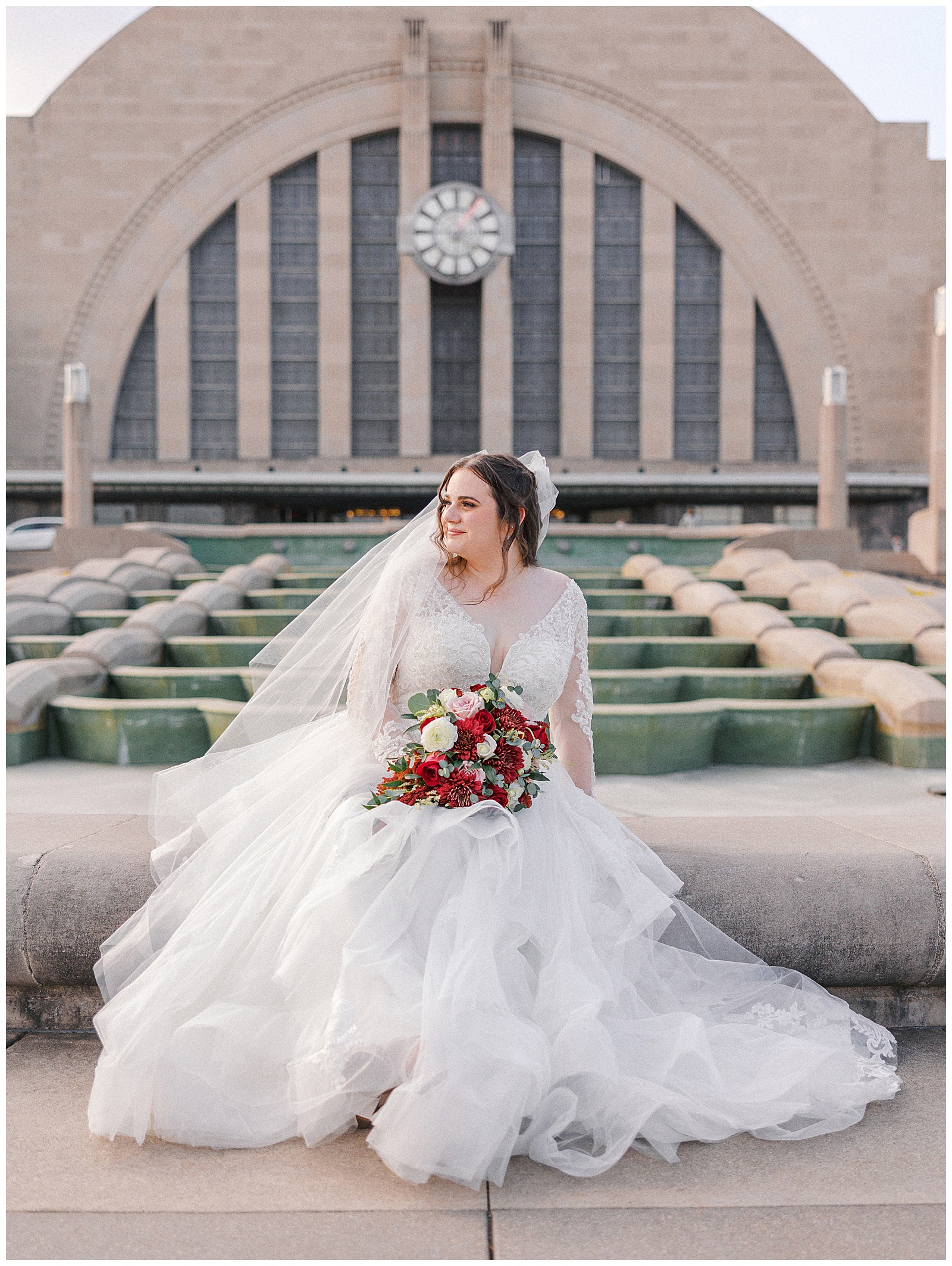 Next, we made our way to Cincinnati Museum Center at Union Terminal, one of the city’s most stunning landmarks, for more portraits! We ended the evening downtown at Fountain Square, just steps away from their reception venue, Backstage Event Center, where the celebration continued with dinner, dancing, and joyful moments shared with family and friends.