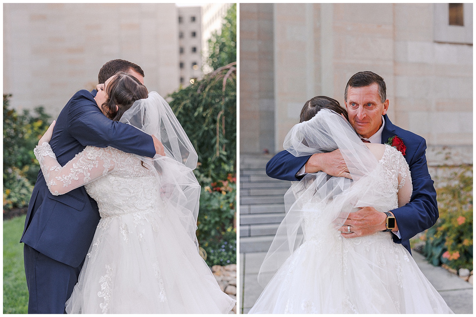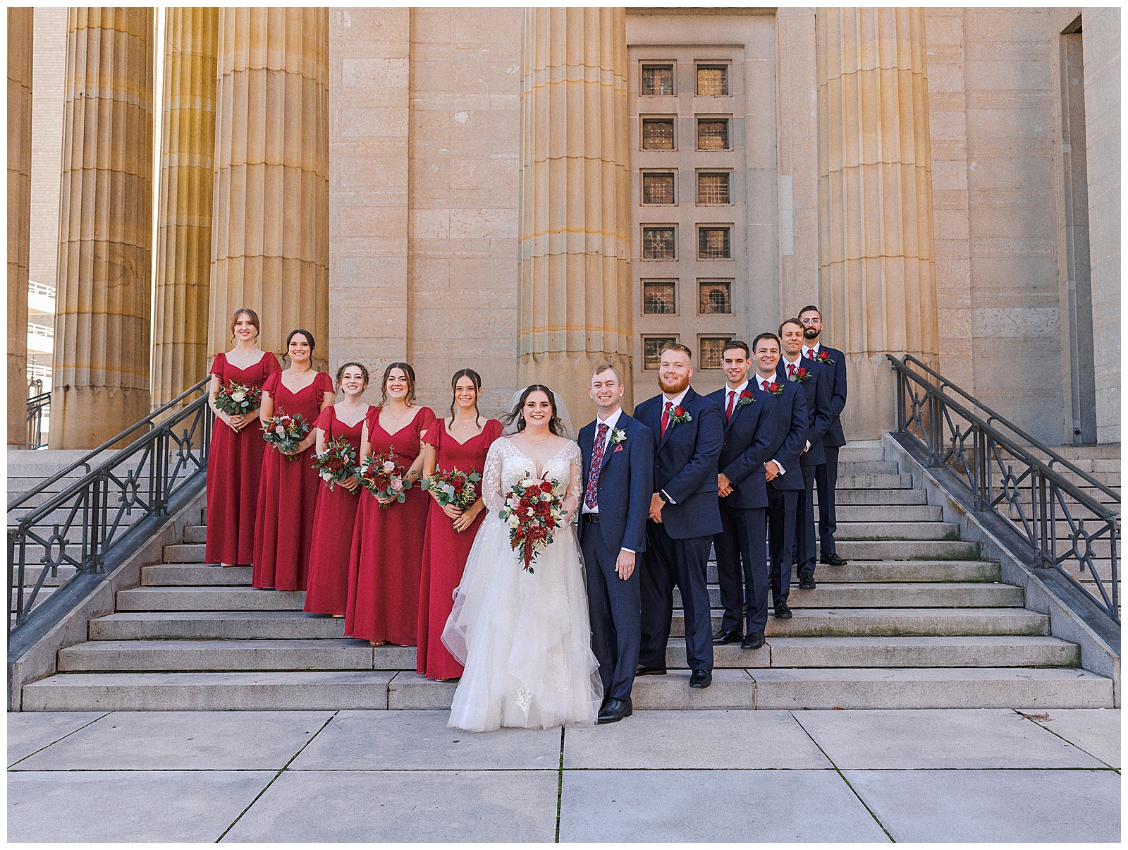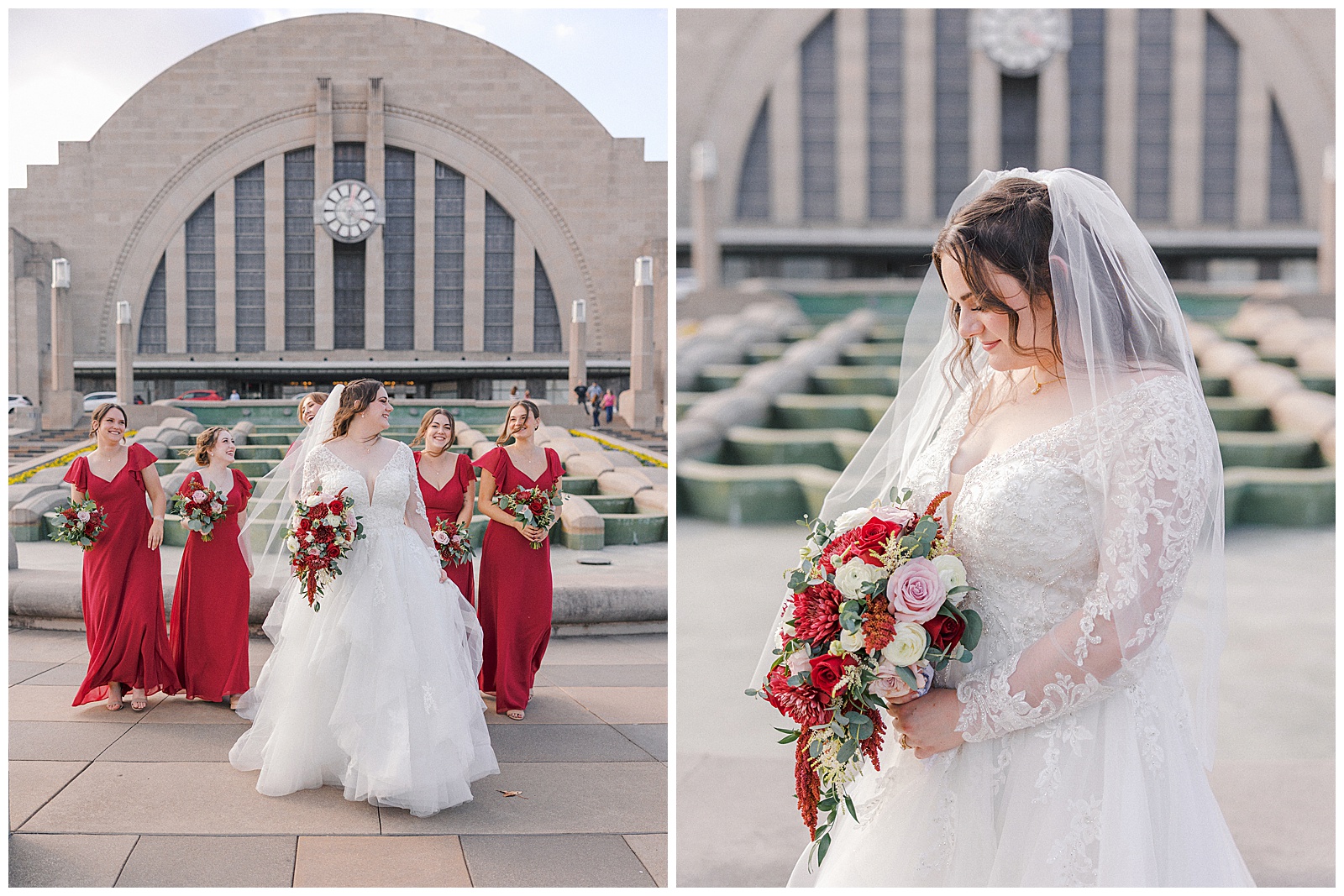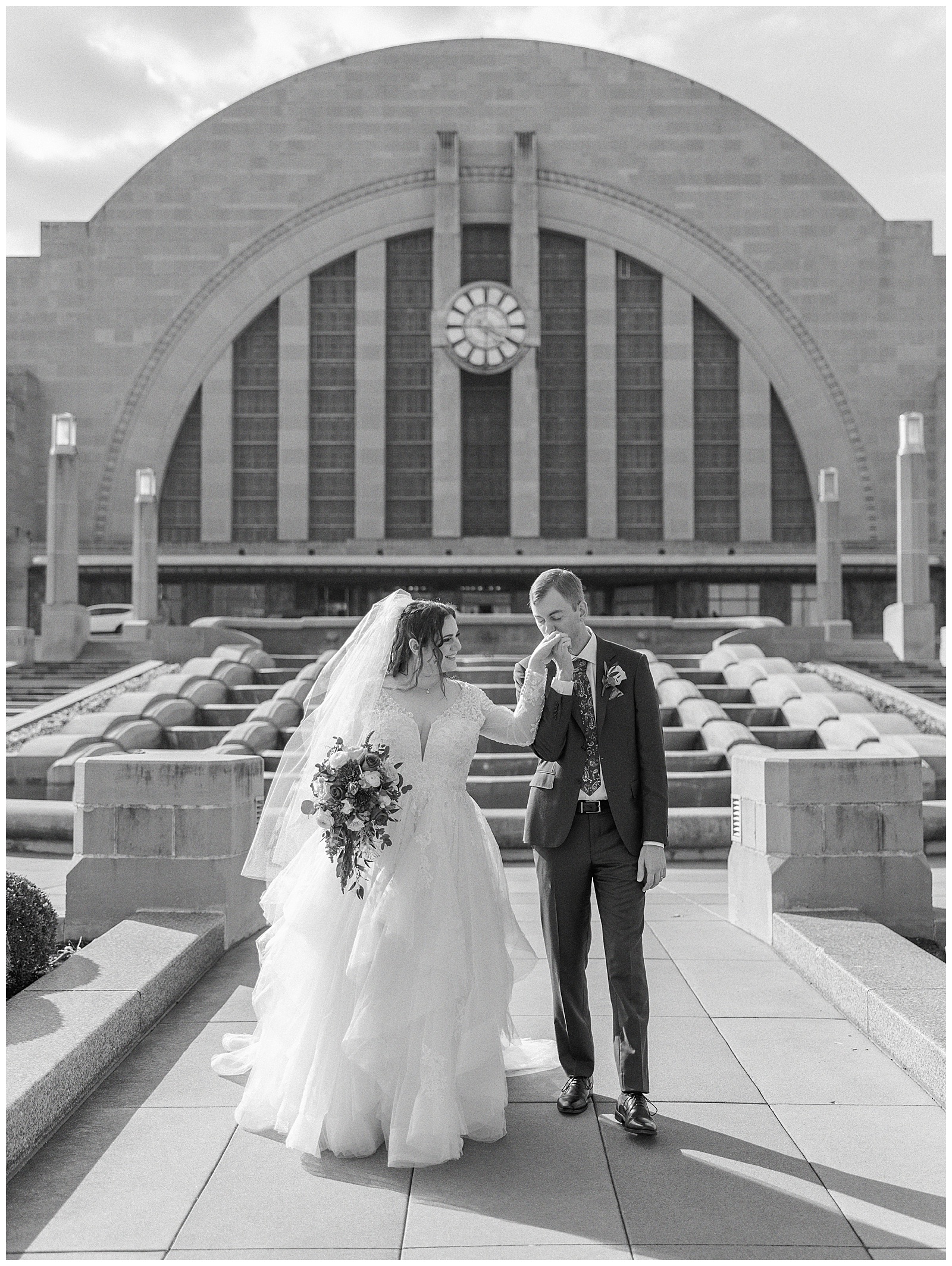 Next, we made our way to Cincinnati Museum Center at Union Terminal, one of the city’s most stunning landmarks, for more portraits! We ended the evening downtown at Fountain Square, just steps away from their reception venue, Backstage Event Center, where the celebration continued with dinner, dancing, and joyful moments shared with family and friends.