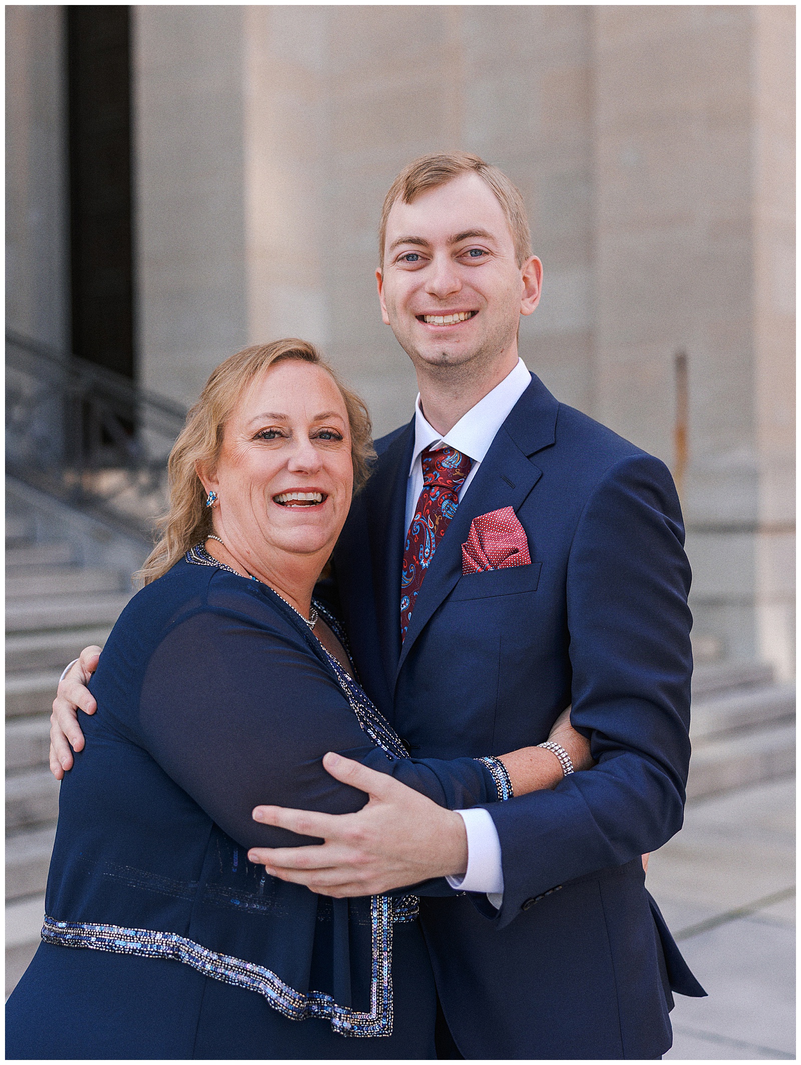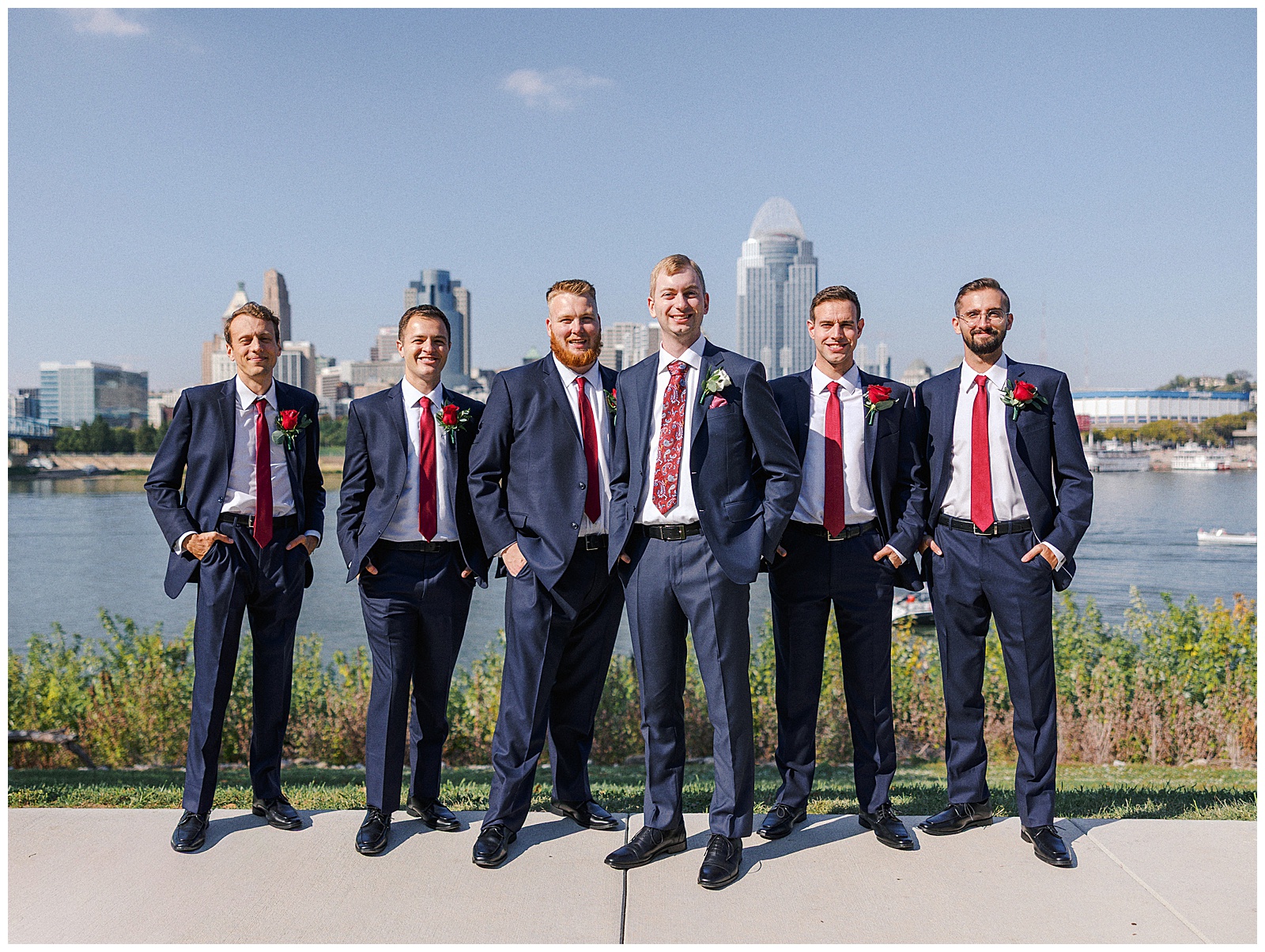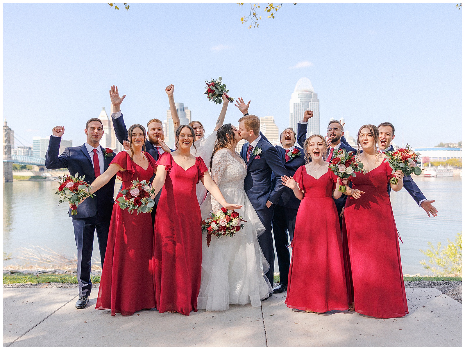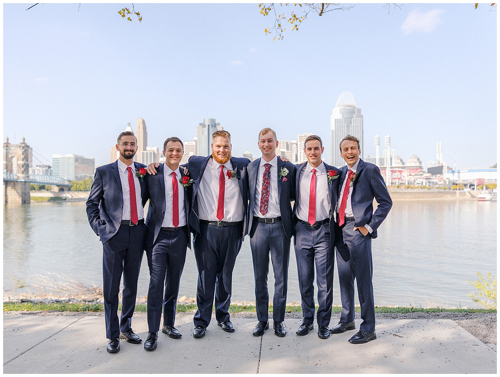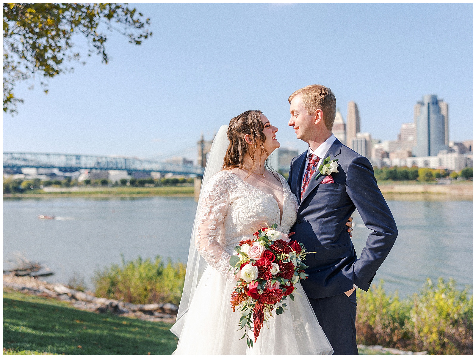 After Mass, we captured portraits on the grand steps of the Cathedral, framed by its iconic columns. From there, we headed to George Rogers Clark Park, where the Cincinnati skyline provided the perfect backdrop. The America’s River Roots Festival was happening that weekend, and the river was full of boats — adding such a fun, lively energy to their portraits!