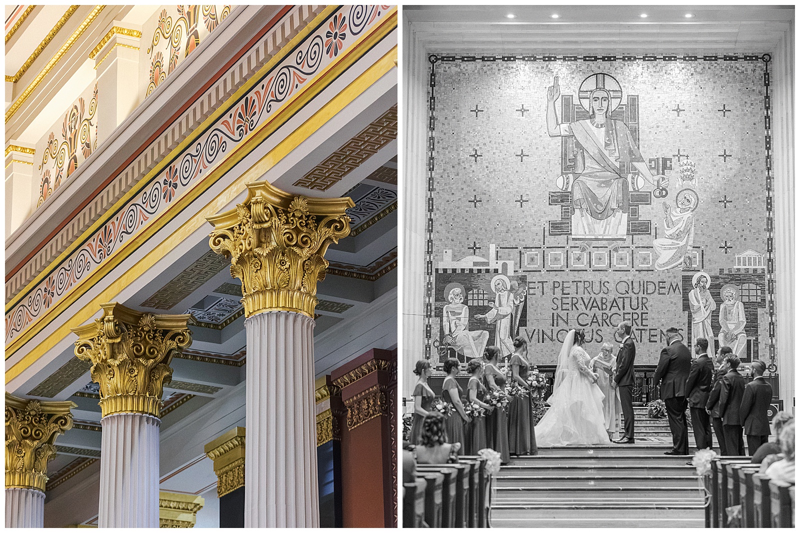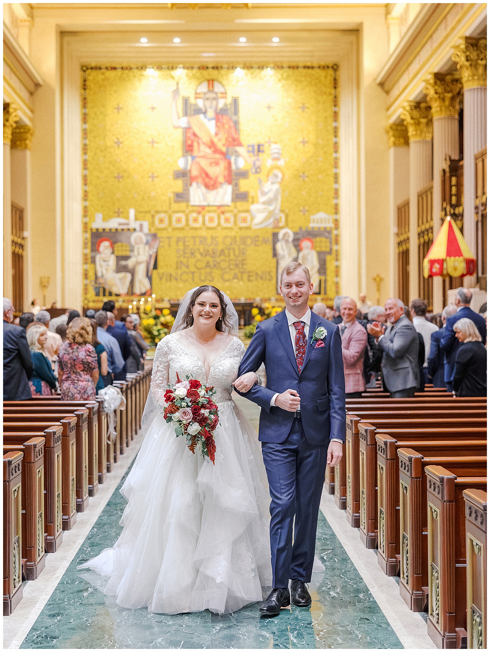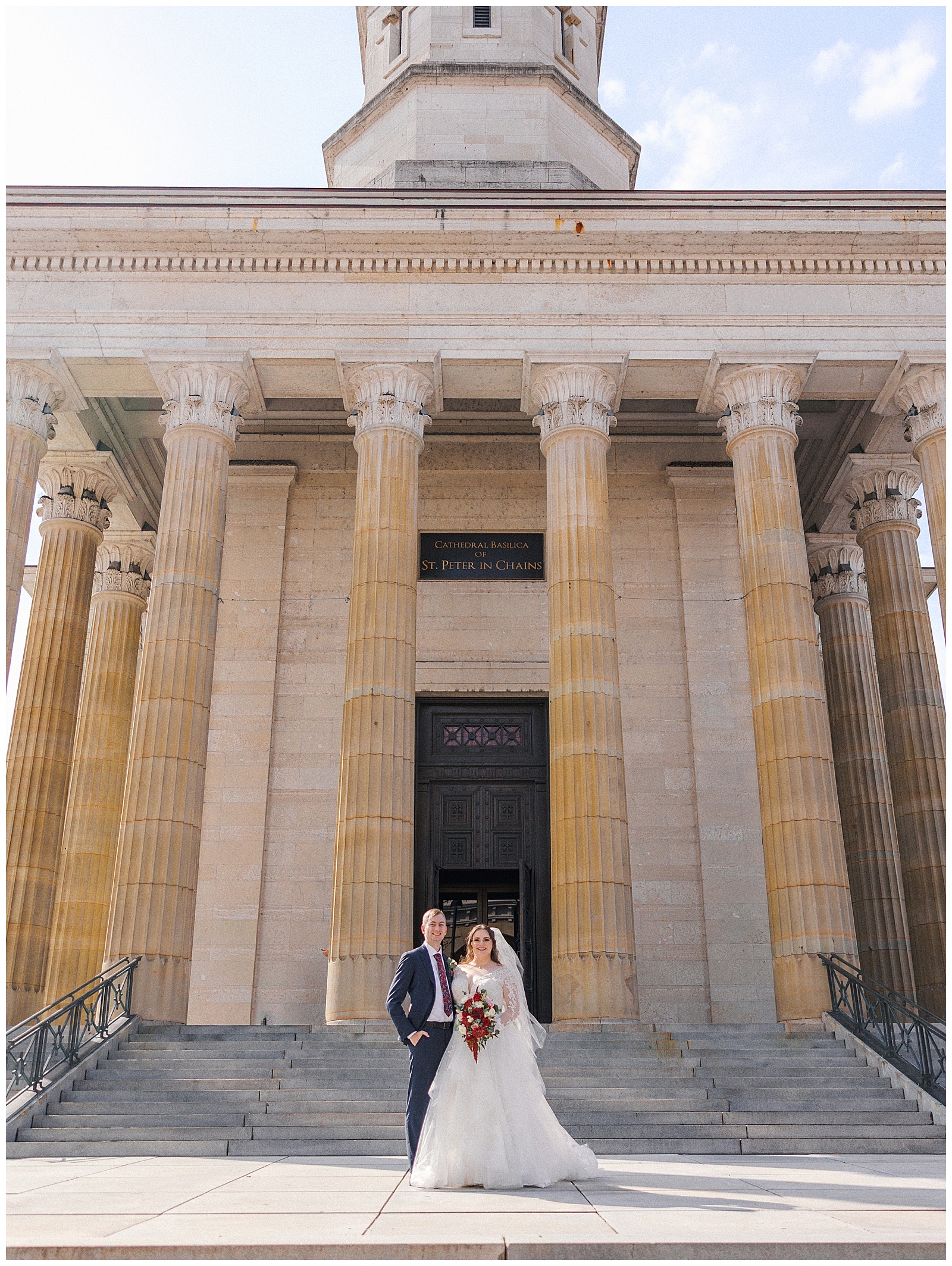 Their Nuptial Mass took place at the very church they attend Mass each Sunday — the breathtaking Cathedral Basilica of St. Peter in Chains. The soaring Greek Revival architecture, marble columns, and sacred music created a truly heavenly atmosphere as they exchanged vows before God and their loved ones.