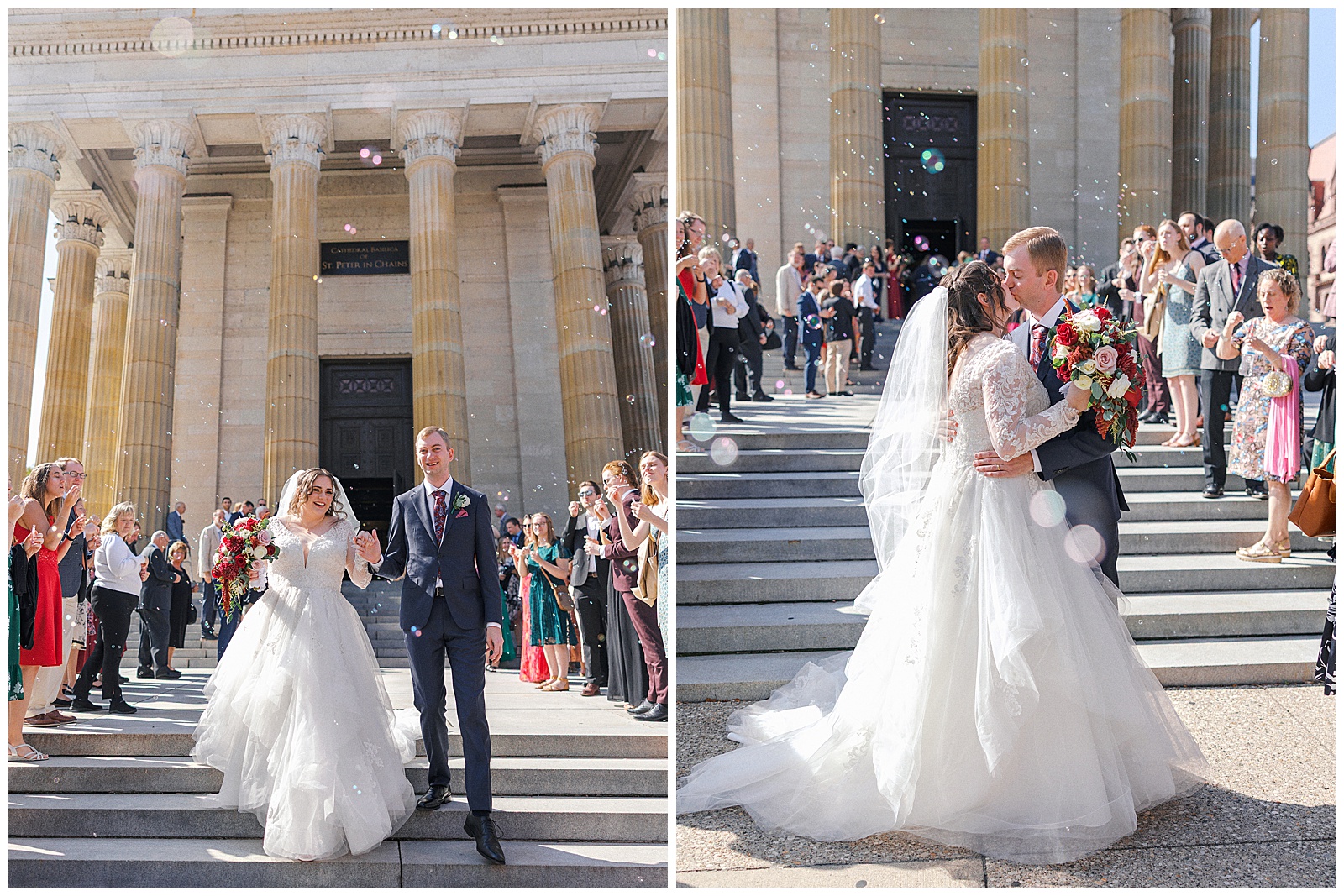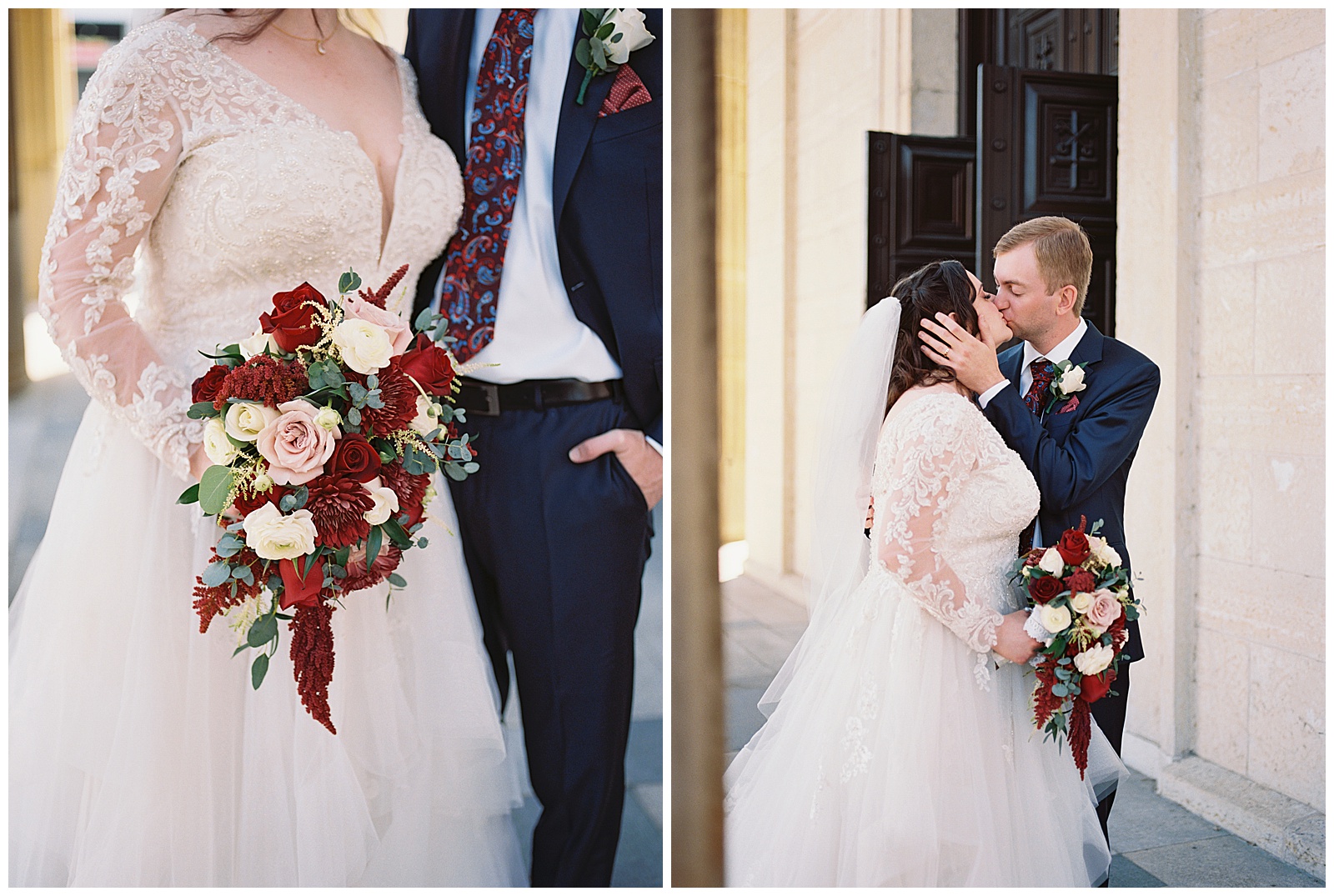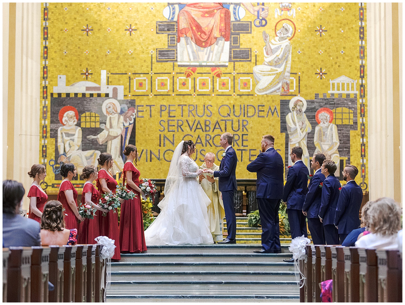 Their Nuptial Mass took place at the very church they attend Mass each Sunday — the breathtaking Cathedral Basilica of St. Peter in Chains. The soaring Greek Revival architecture, marble columns, and sacred music created a truly heavenly atmosphere as they exchanged vows before God and their loved ones.